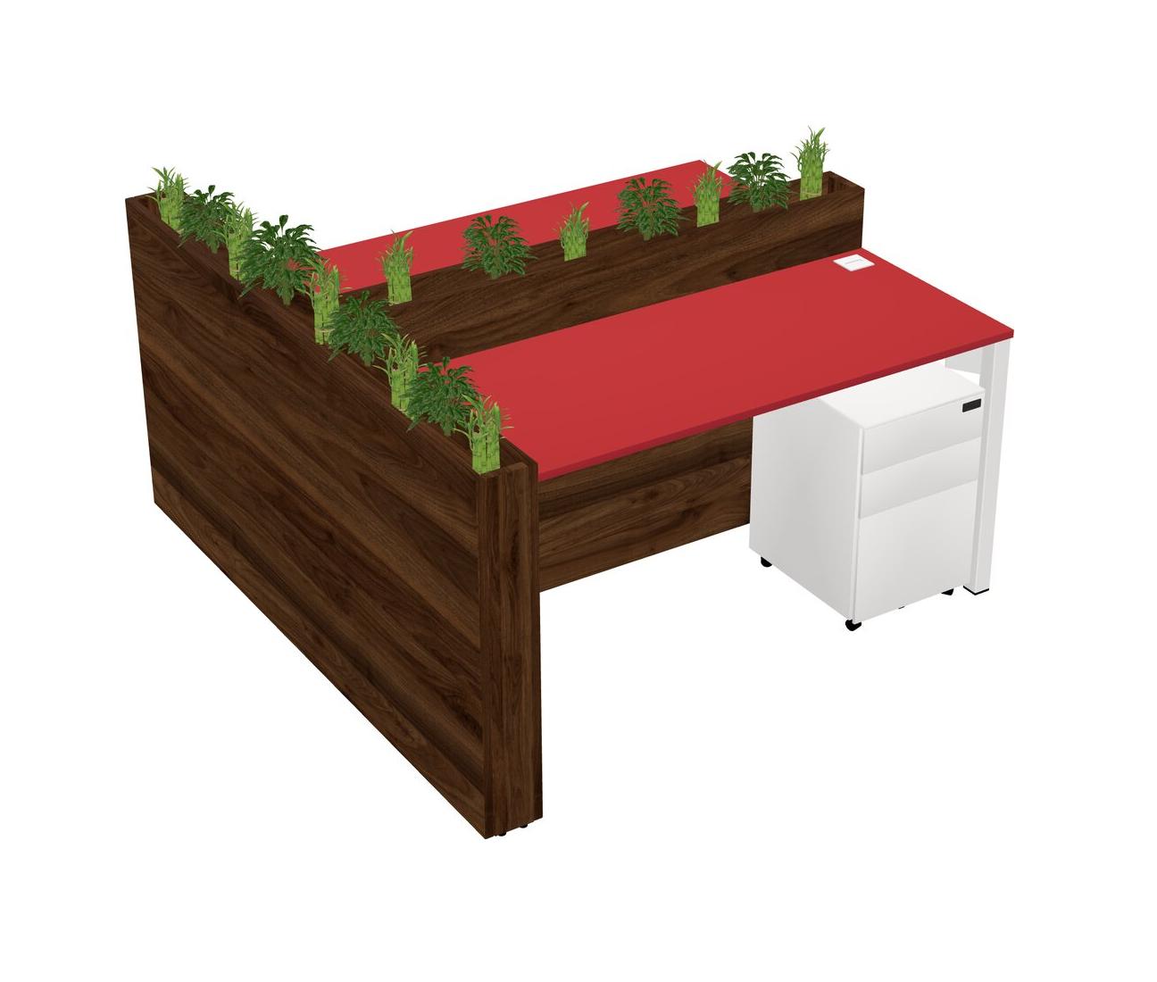 Prism Red Rectangular Shared Office Desk System Metal Mobile Drawers (Pots & Plants Sold Separately)