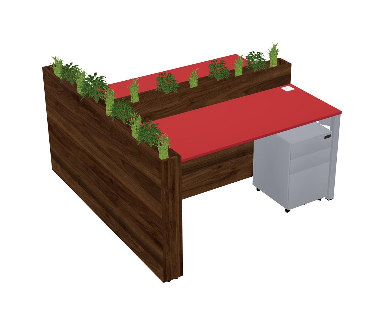 Prism Red Rectangular Shared Office Desk System Metal Mobile Drawers (Pots & Plants Sold Separately)