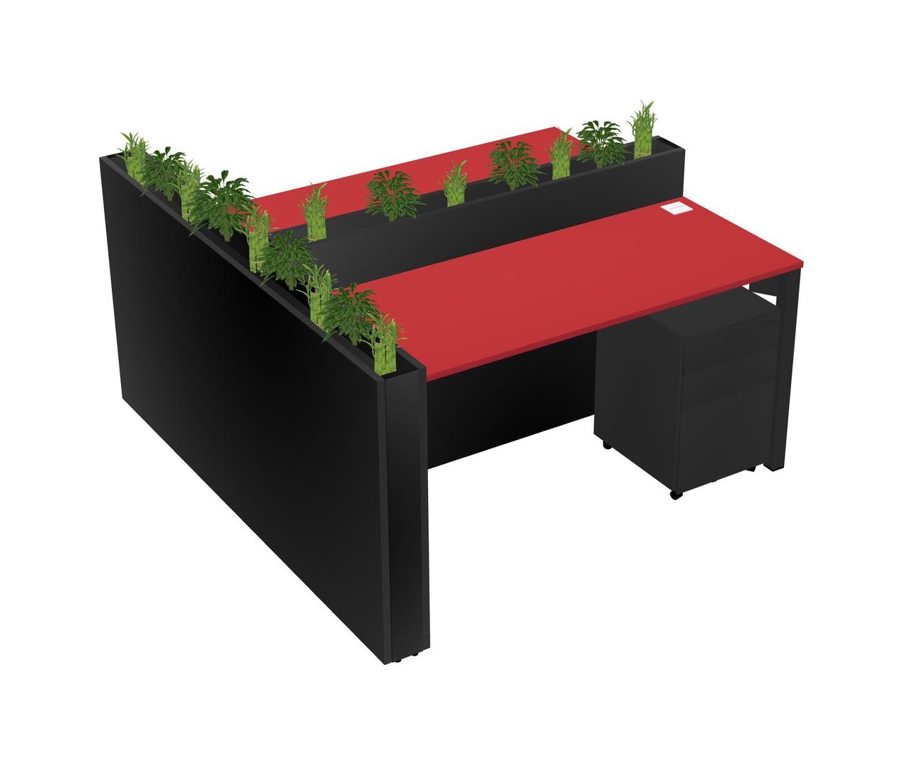 Prism Red Rectangular Shared Office Desk System Metal Mobile Drawers (Pots & Plants Sold Separately)