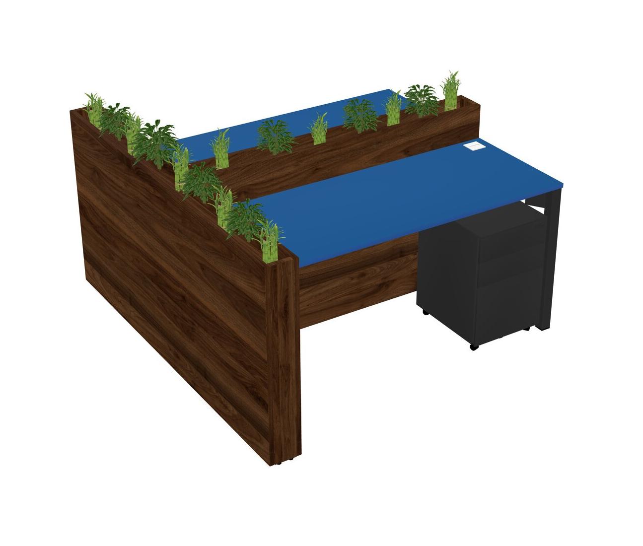 Prism Blue Rectangular Shared Office Desk System Metal Mobile Drawers (Pots & Plants Sold Separately)