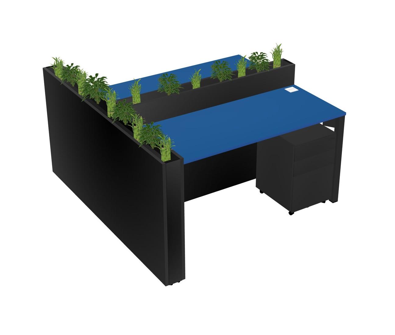 Prism Blue Rectangular Shared Office Desk System Metal Mobile Drawers (Pots & Plants Sold Separately)