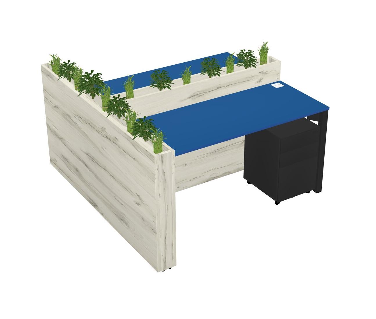 Prism Blue Rectangular Shared Office Desk System Metal Mobile Drawers (Pots & Plants Sold Separately)