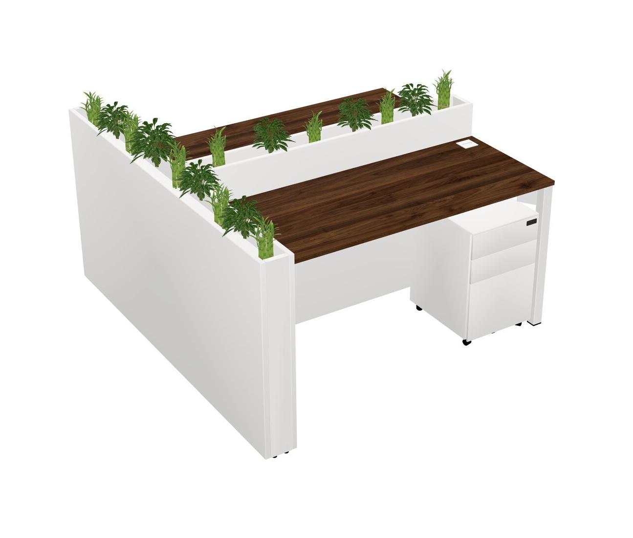 Columbia Walnut Rectangular Shared Office Desk System Metal Mobile Drawers (Pots & Plants Sold Separately)