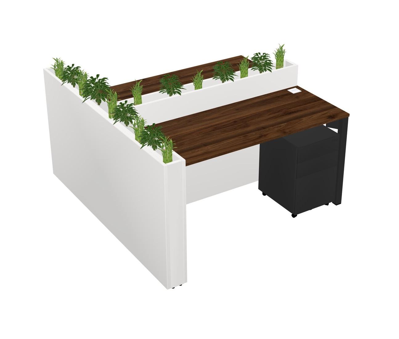 Columbia Walnut Rectangular Shared Office Desk System Metal Mobile Drawers (Pots & Plants Sold Separately)