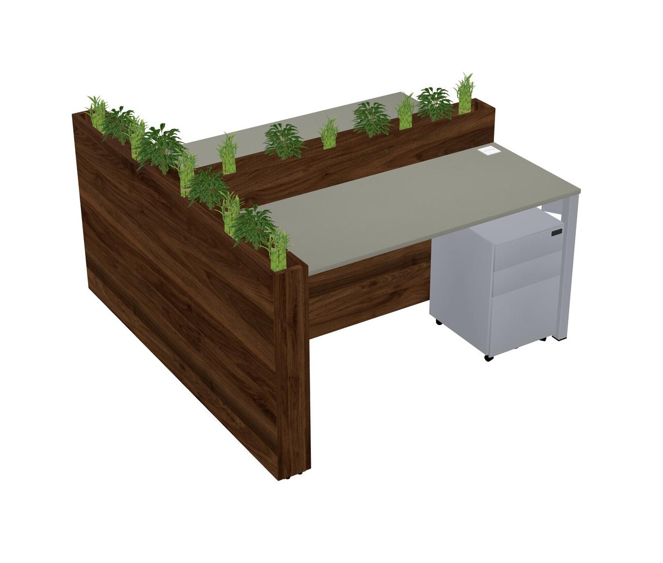 Grey Shadows Rectangular Shared Office Desk System Metal Mobile Drawers (Pots & Plants Sold Separately)