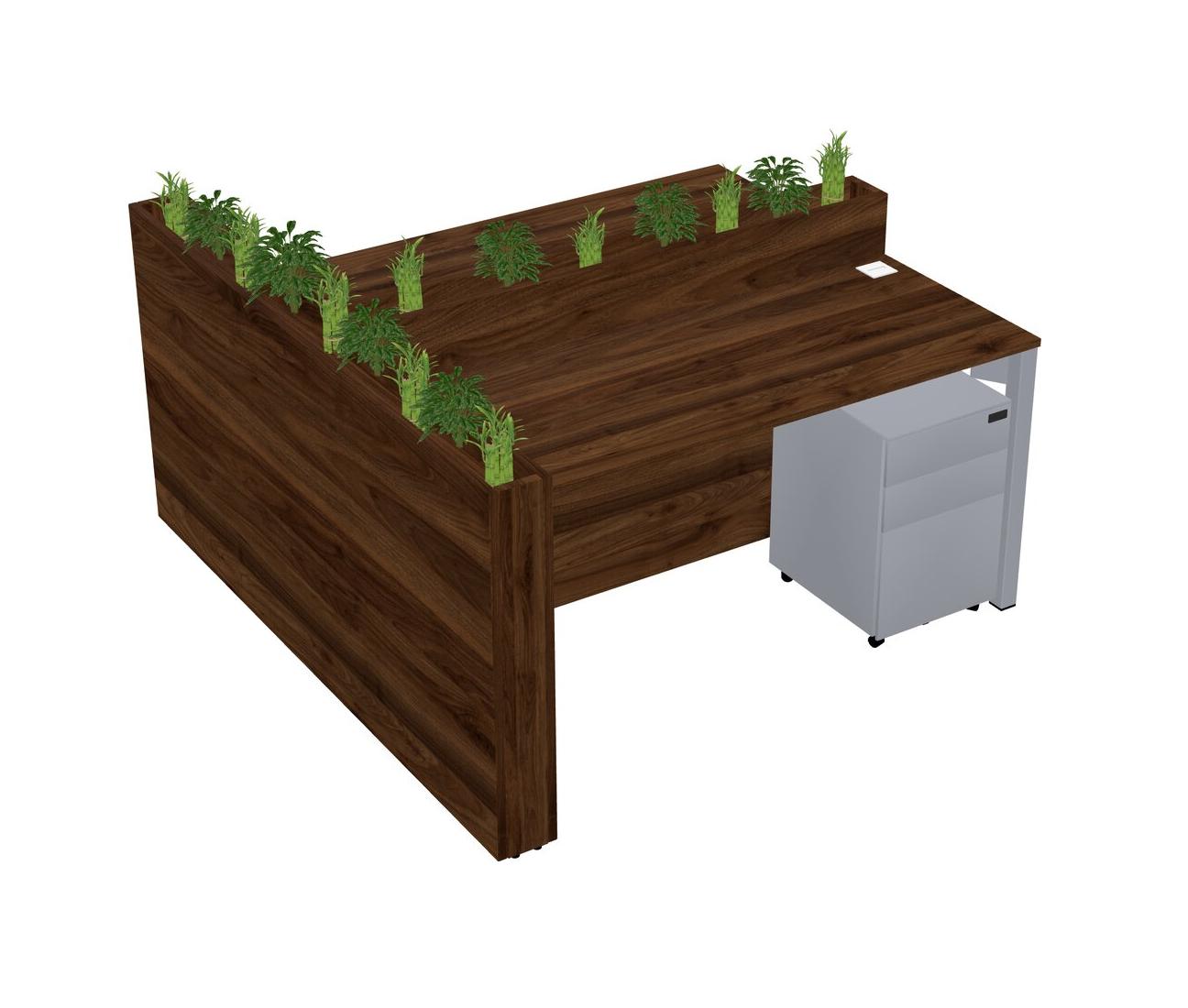 Columbia Walnut Rectangular Shared Office Desk System Metal Mobile Drawers (Pots & Plants Sold Separately)