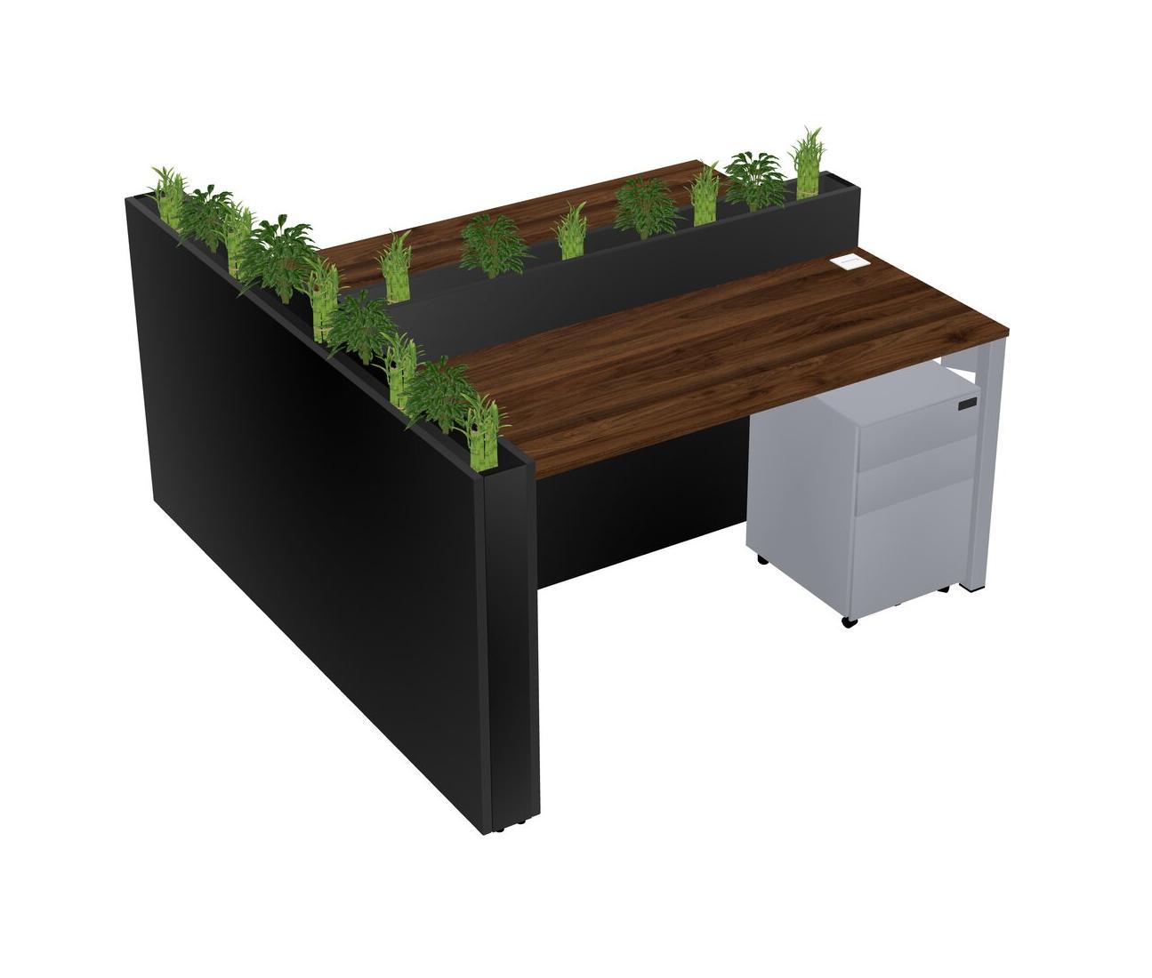 Columbia Walnut Rectangular Shared Office Desk System Metal Mobile Drawers (Pots & Plants Sold Separately)