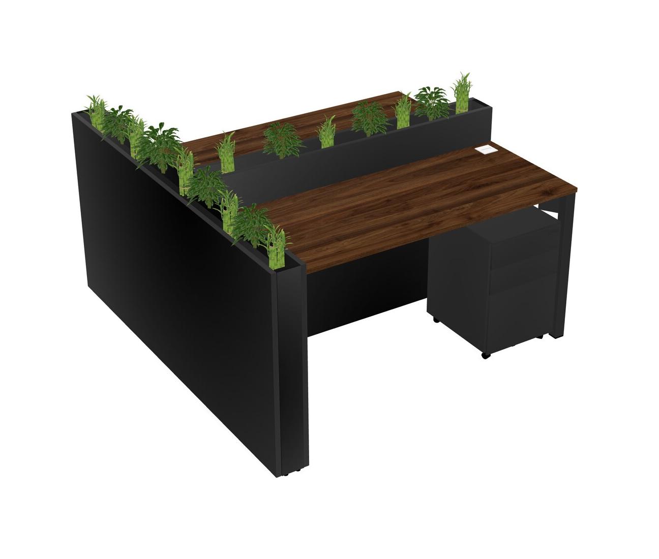 Columbia Walnut Rectangular Shared Office Desk System Metal Mobile Drawers (Pots & Plants Sold Separately)