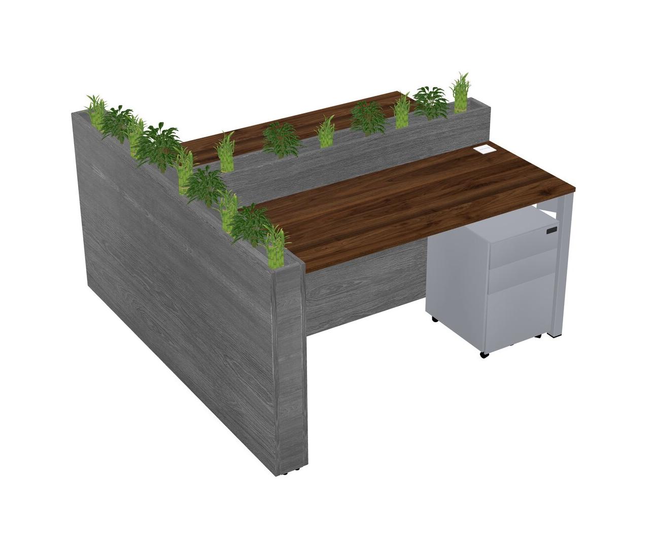 Columbia Walnut Rectangular Shared Office Desk System Metal Mobile Drawers (Pots & Plants Sold Separately)