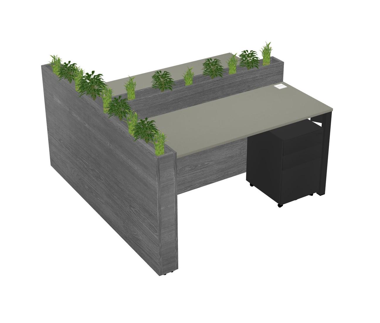 Grey Shadows Rectangular Shared Office Desk System Metal Mobile Drawers (Pots & Plants Sold Separately)