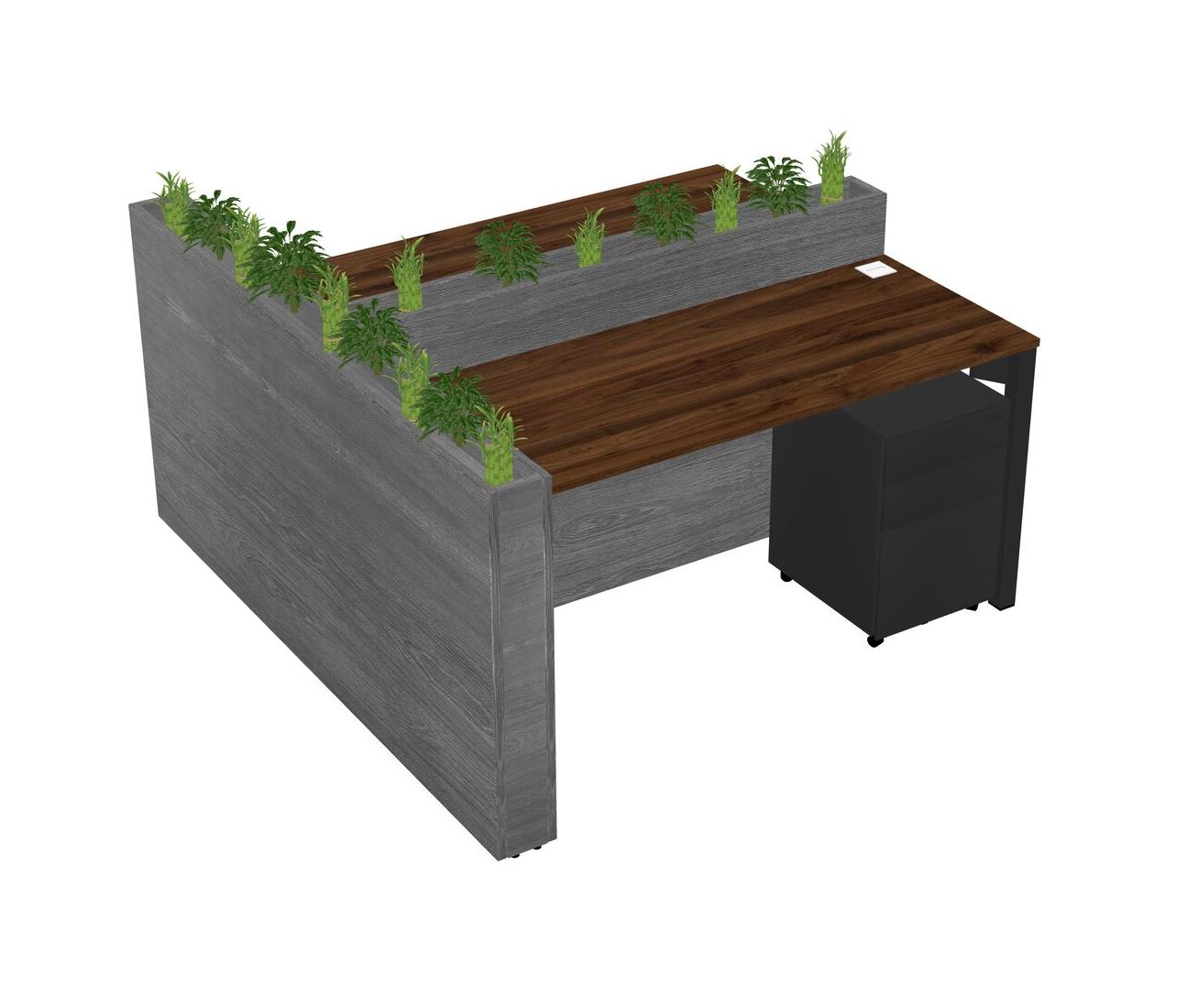 Columbia Walnut Rectangular Shared Office Desk System Metal Mobile Drawers (Pots & Plants Sold Separately)