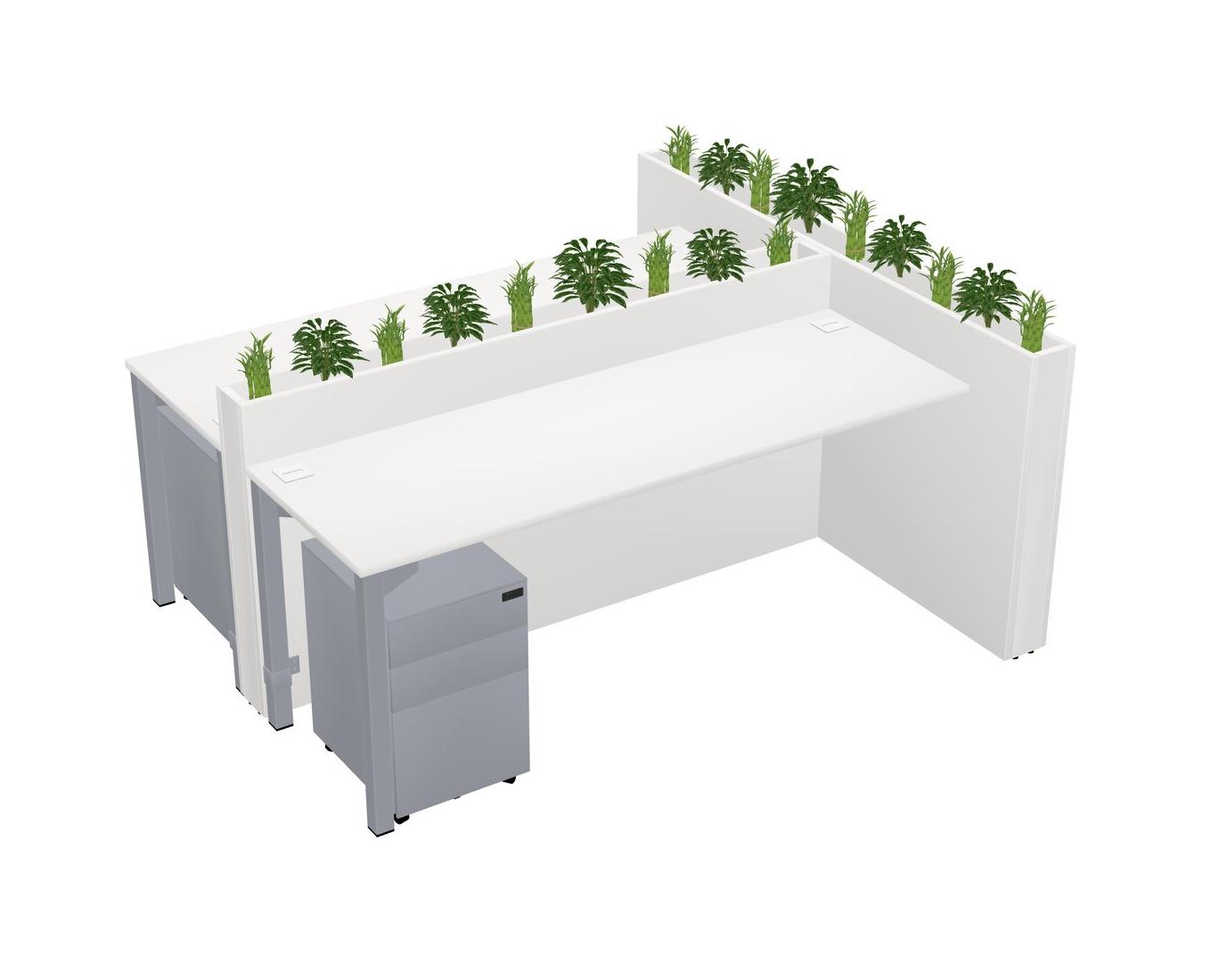 White Rectangular Shared Office Desk System Metal Mobile Drawers (Pots & Plants Sold Separately)