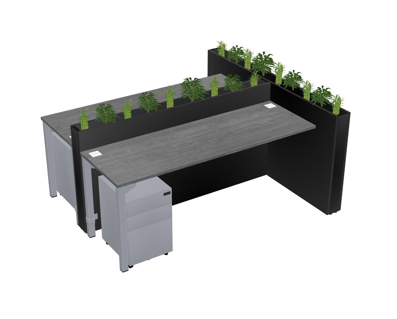 Grey Rectangular Shared Office Desk System Metal Mobile Drawers (Pots & Plants Sold Separately)