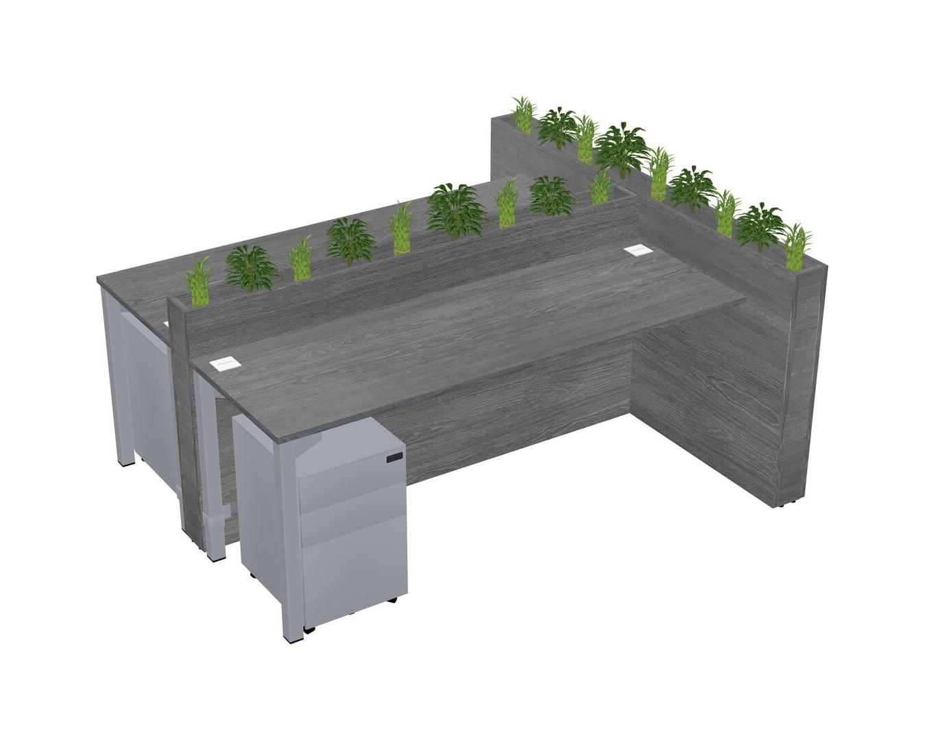 Grey Rectangular Shared Office Desk System Metal Mobile Drawers (Pots & Plants Sold Separately)