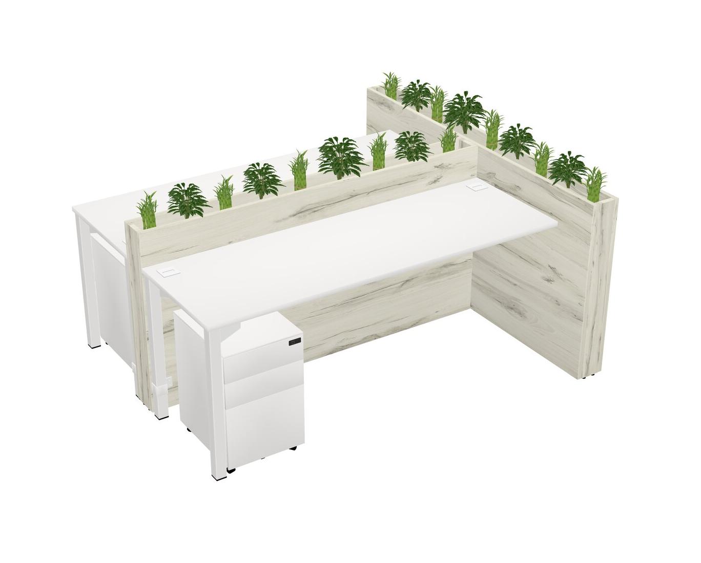 White Rectangular Shared Office Desk System Metal Mobile Drawers (Pots & Plants Sold Separately)