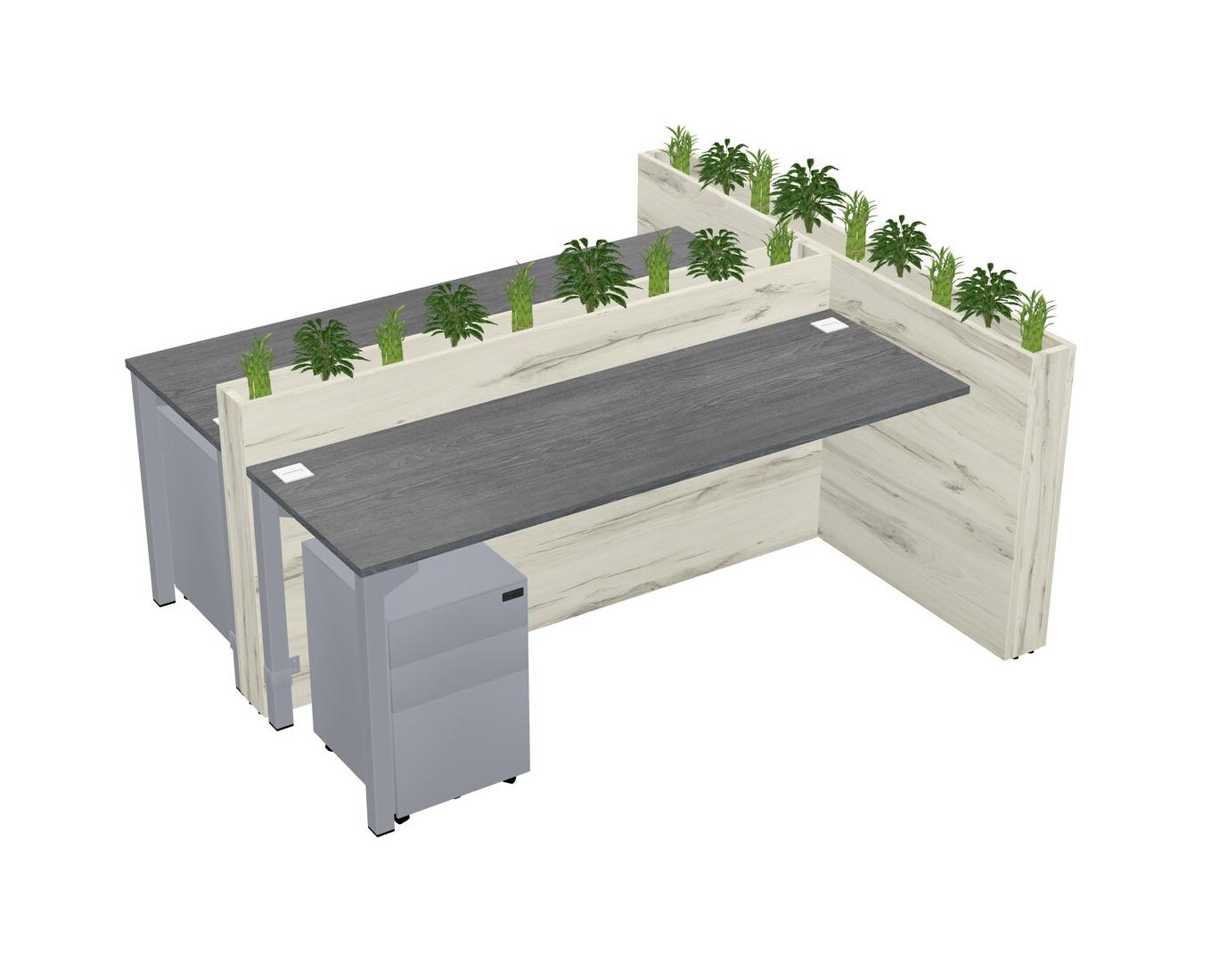 Grey Rectangular Shared Office Desk System Metal Mobile Drawers (Pots & Plants Sold Separately)