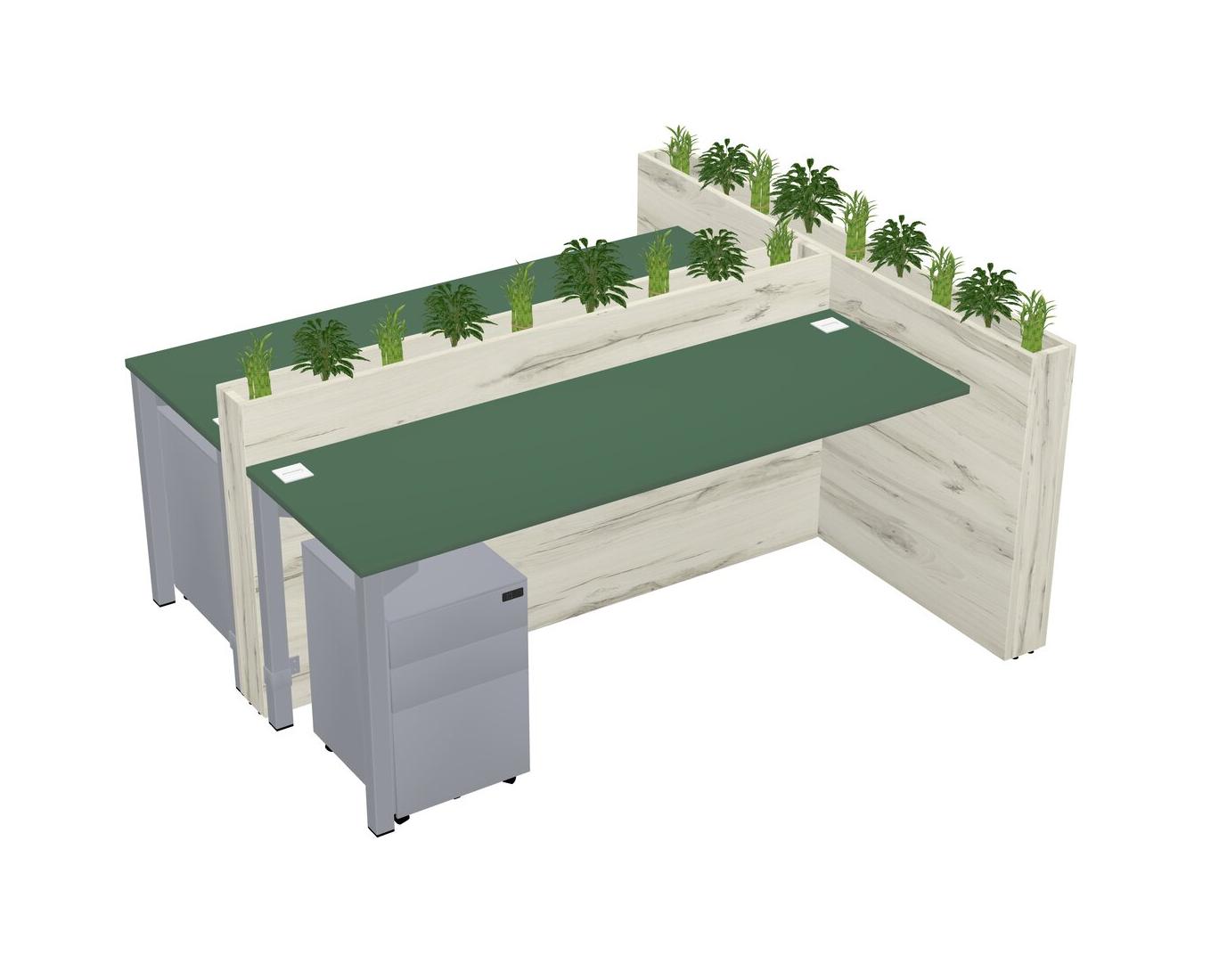 Green Rectangular Shared Office Desk System Metal Mobile Drawers (Pots & Plants Sold Separately)