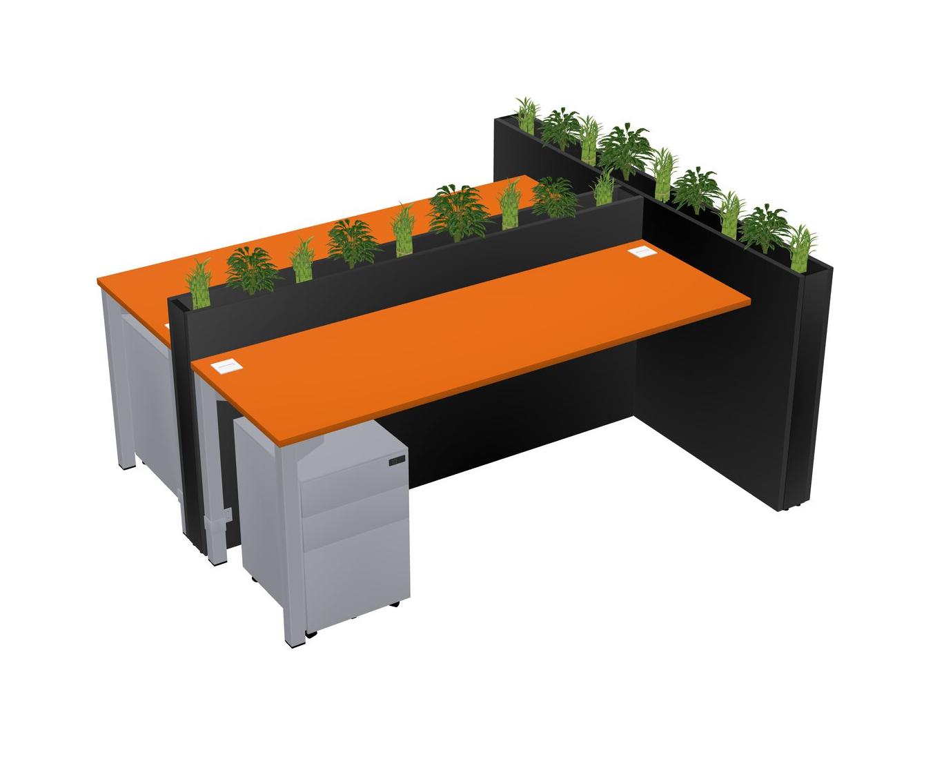 Orange Rectangular Shared Office Desk System Metal Mobile Drawers (Pots & Plants Sold Separately)