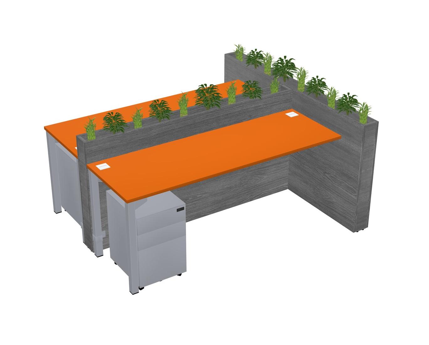 Orange Rectangular Shared Office Desk System Metal Mobile Drawers (Pots & Plants Sold Separately)