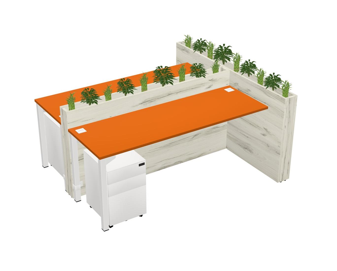 Orange Rectangular Shared Office Desk System Metal Mobile Drawers (Pots & Plants Sold Separately)