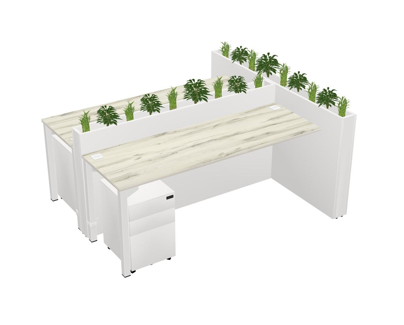 Heinne Holz Rectangular Shared Office Desk System Metal Mobile Drawers (Pots & Plants Sold Separately)