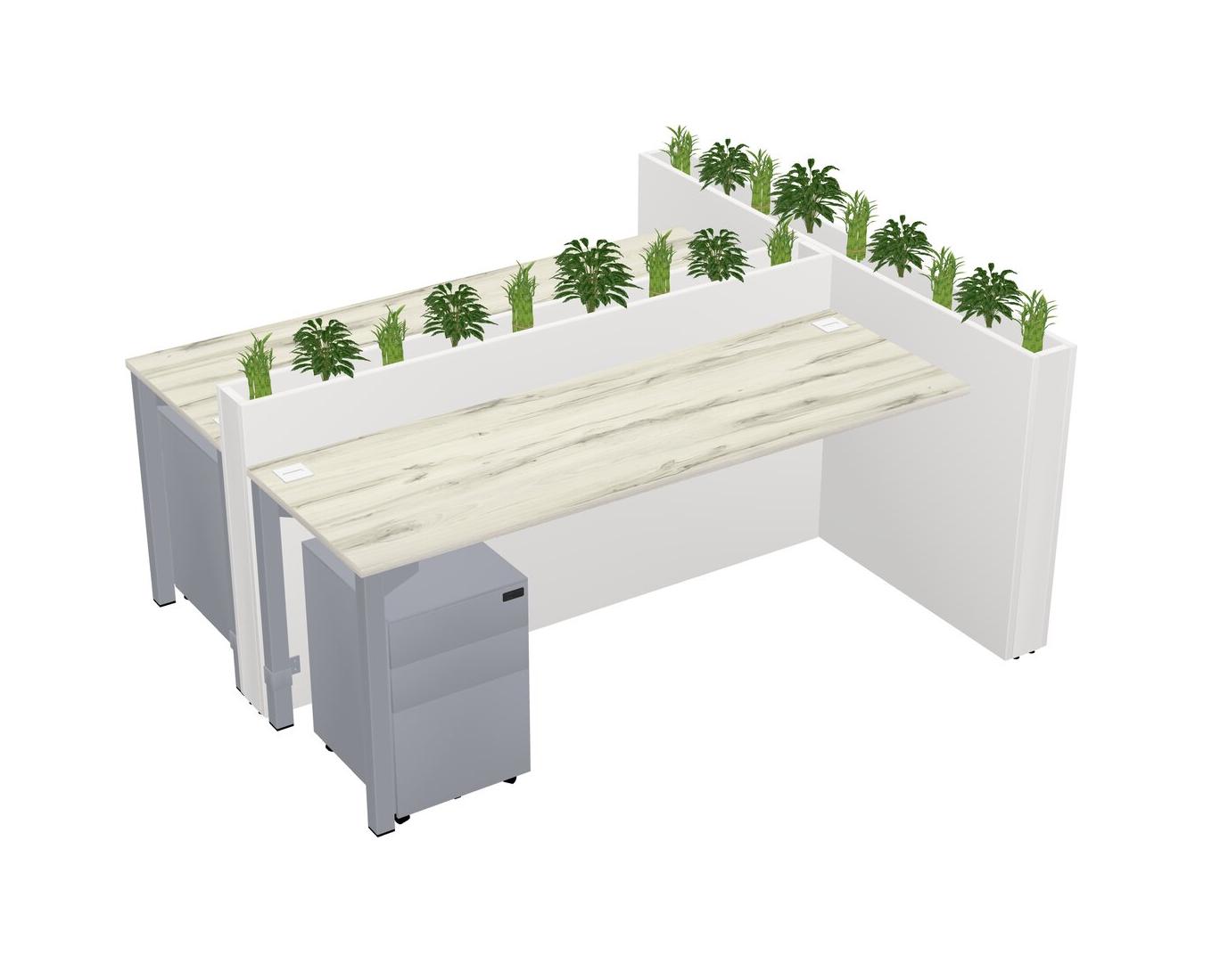 Heinne Holz Rectangular Shared Office Desk System Metal Mobile Drawers (Pots & Plants Sold Separately)