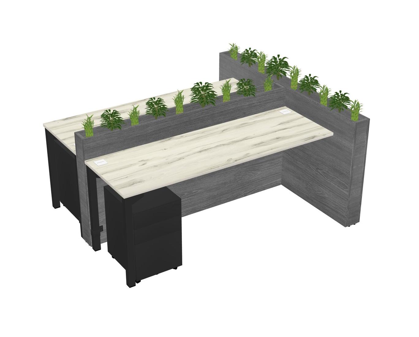 Heinne Holz Rectangular Shared Office Desk System Metal Mobile Drawers (Pots & Plants Sold Separately)