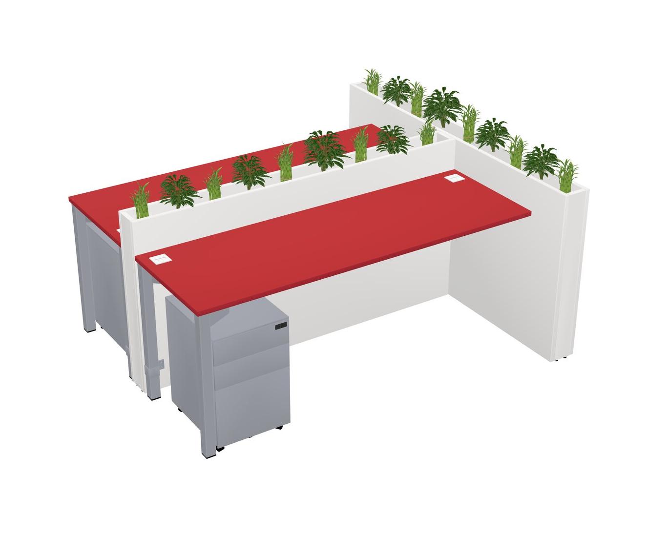 Prism Red Rectangular Shared Office Desk System Metal Mobile Drawers (Pots & Plants Sold Separately)