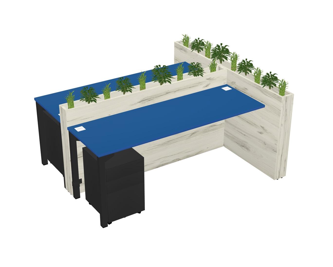 Prism Blue Rectangular Shared Office Desk System Metal Mobile Drawers (Pots & Plants Sold Separately)