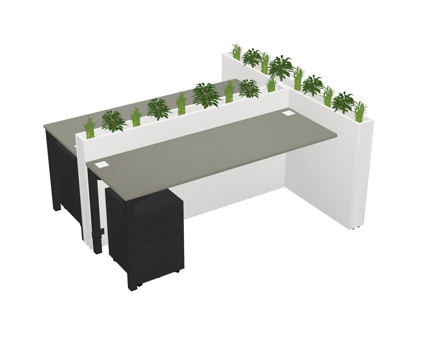 Grey Shadows Rectangular Shared Office Desk System Metal Mobile Drawers (Pots & Plants Sold Separately)