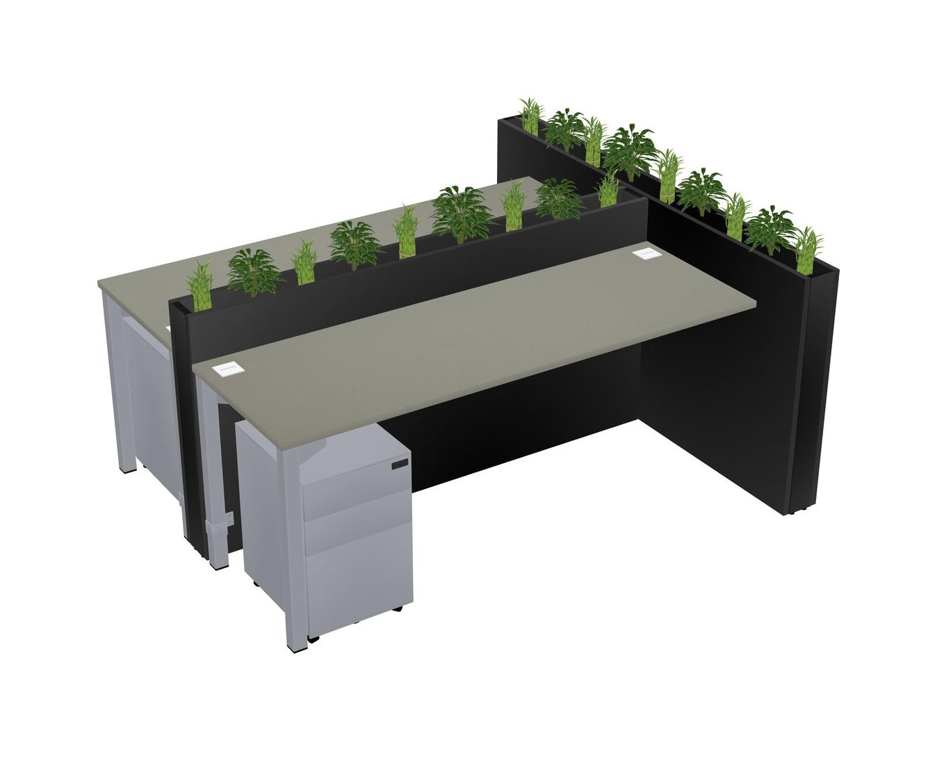 Grey Shadows Rectangular Shared Office Desk System Metal Mobile Drawers (Pots & Plants Sold Separately)