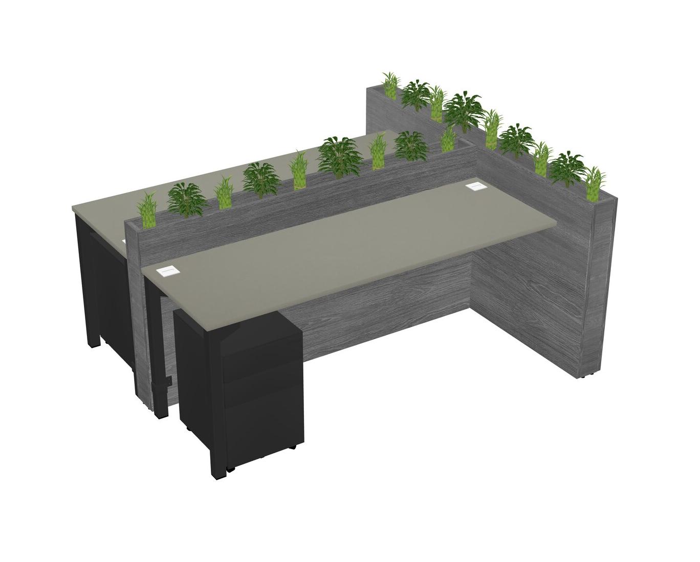 Grey Shadows Rectangular Shared Office Desk System Metal Mobile Drawers (Pots & Plants Sold Separately)