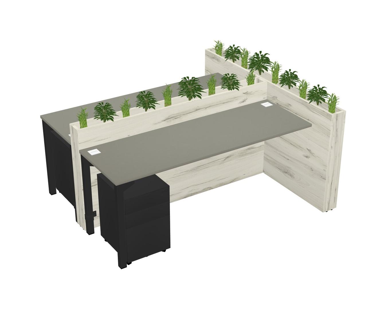 Grey Shadows Rectangular Shared Office Desk System Metal Mobile Drawers (Pots & Plants Sold Separately)