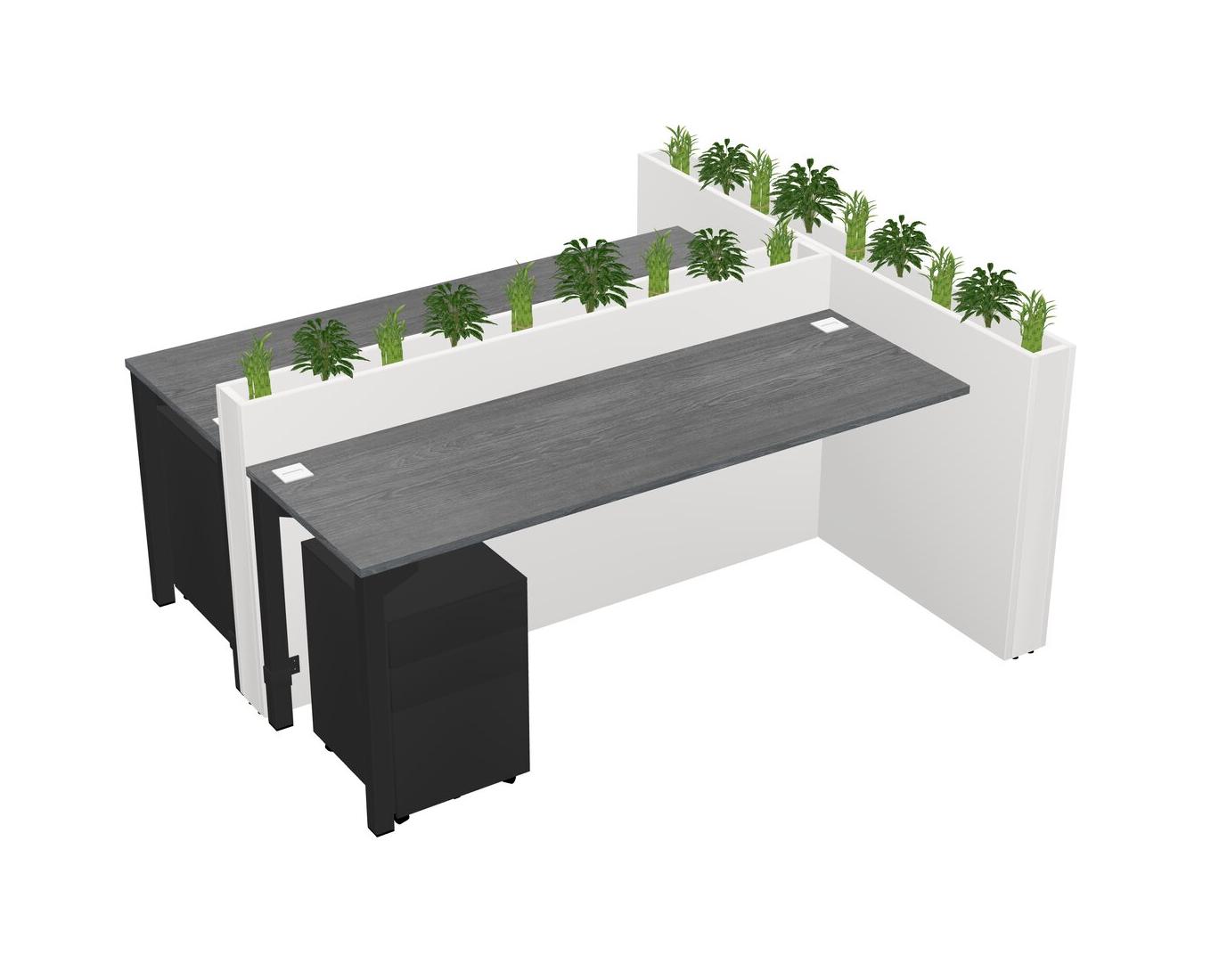 Grey Rectangular Shared Office Desk System Metal Mobile Drawers (Pots & Plants Sold Separately)