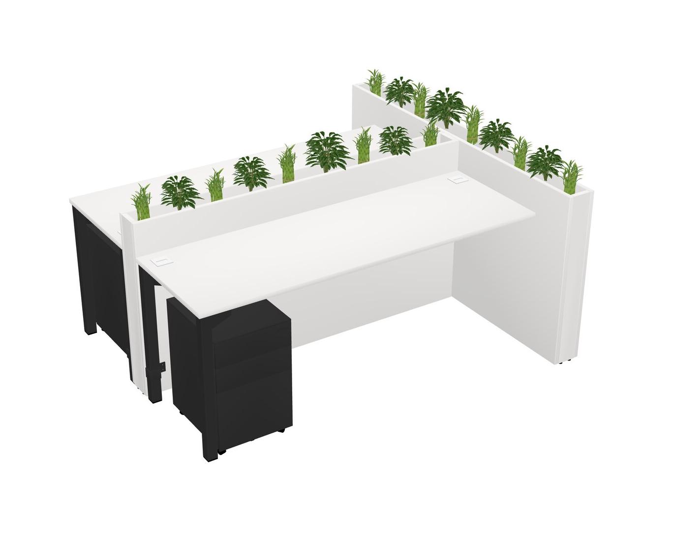 White Rectangular Shared Office Desk System Metal Mobile Drawers (Pots & Plants Sold Separately)