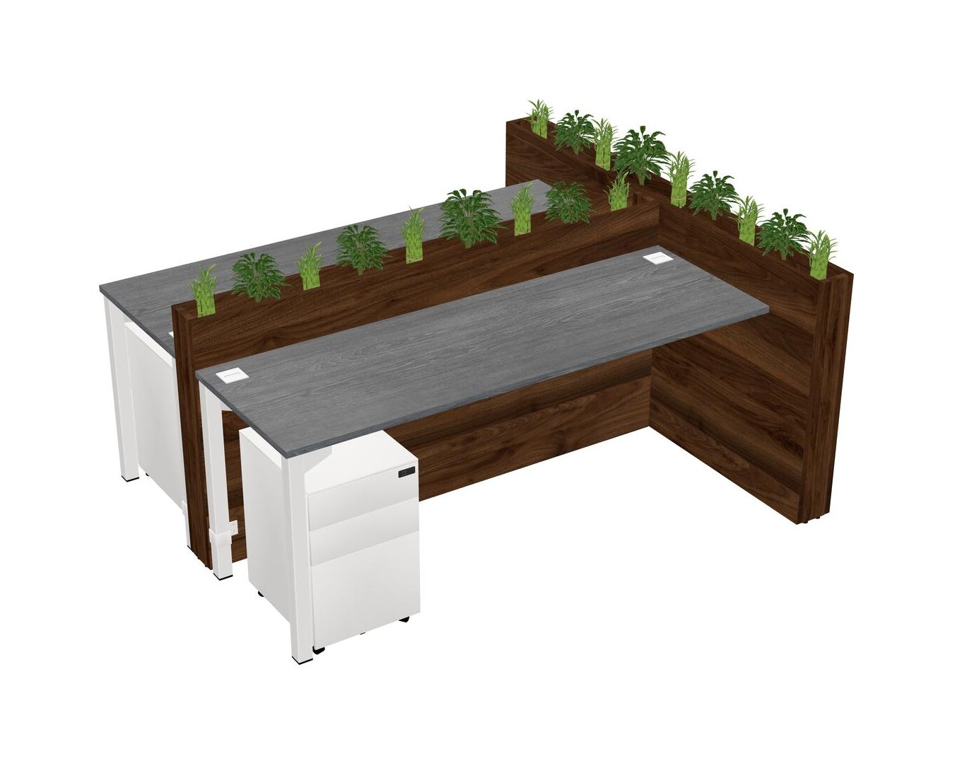 Grey Rectangular Shared Office Desk System Metal Mobile Drawers (Pots & Plants Sold Separately)