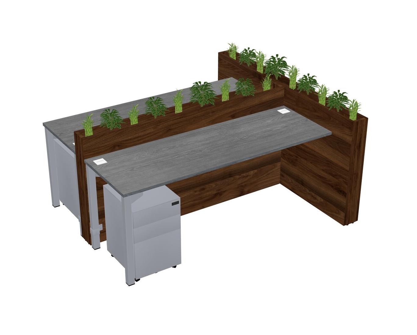 Grey Rectangular Shared Office Desk System Metal Mobile Drawers (Pots & Plants Sold Separately)