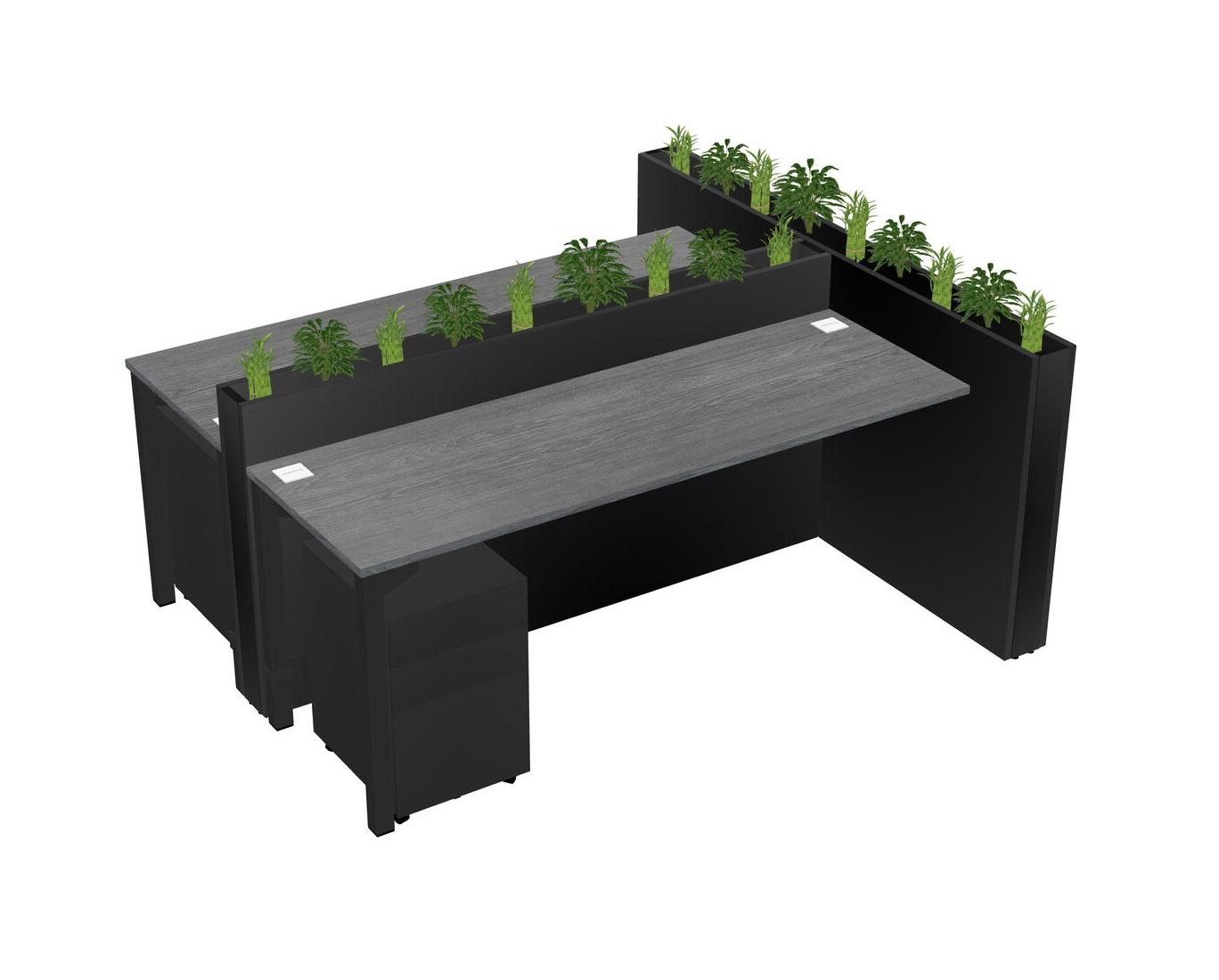 Grey Rectangular Shared Office Desk System Metal Mobile Drawers (Pots & Plants Sold Separately)