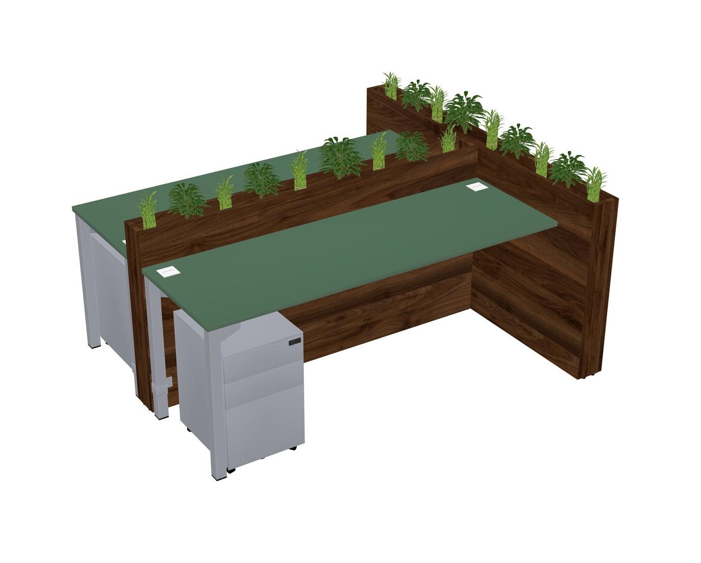 Green Rectangular Shared Office Desk System Metal Mobile Drawers (Pots & Plants Sold Separately)