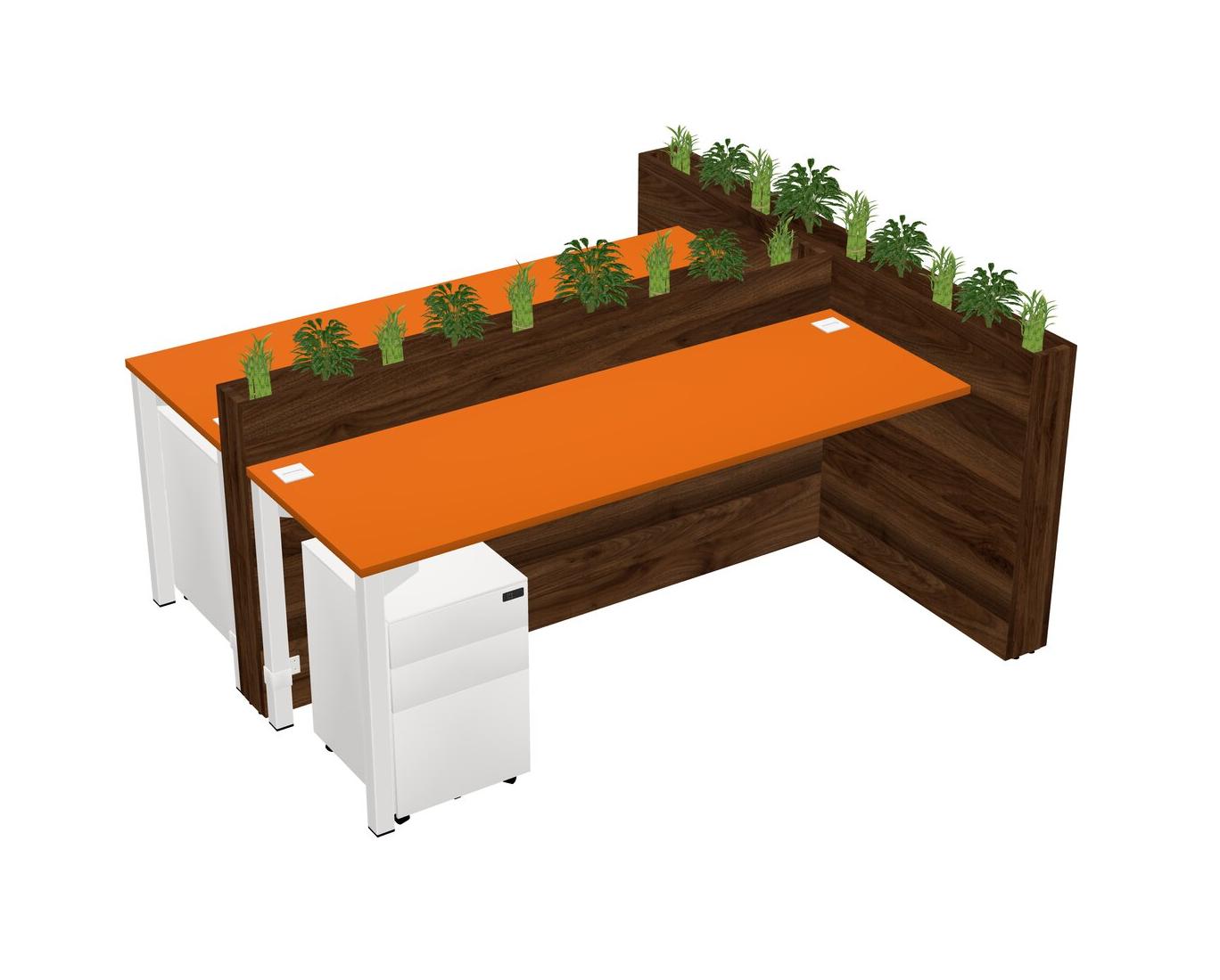 Orange Rectangular Shared Office Desk System Metal Mobile Drawers (Pots & Plants Sold Separately)