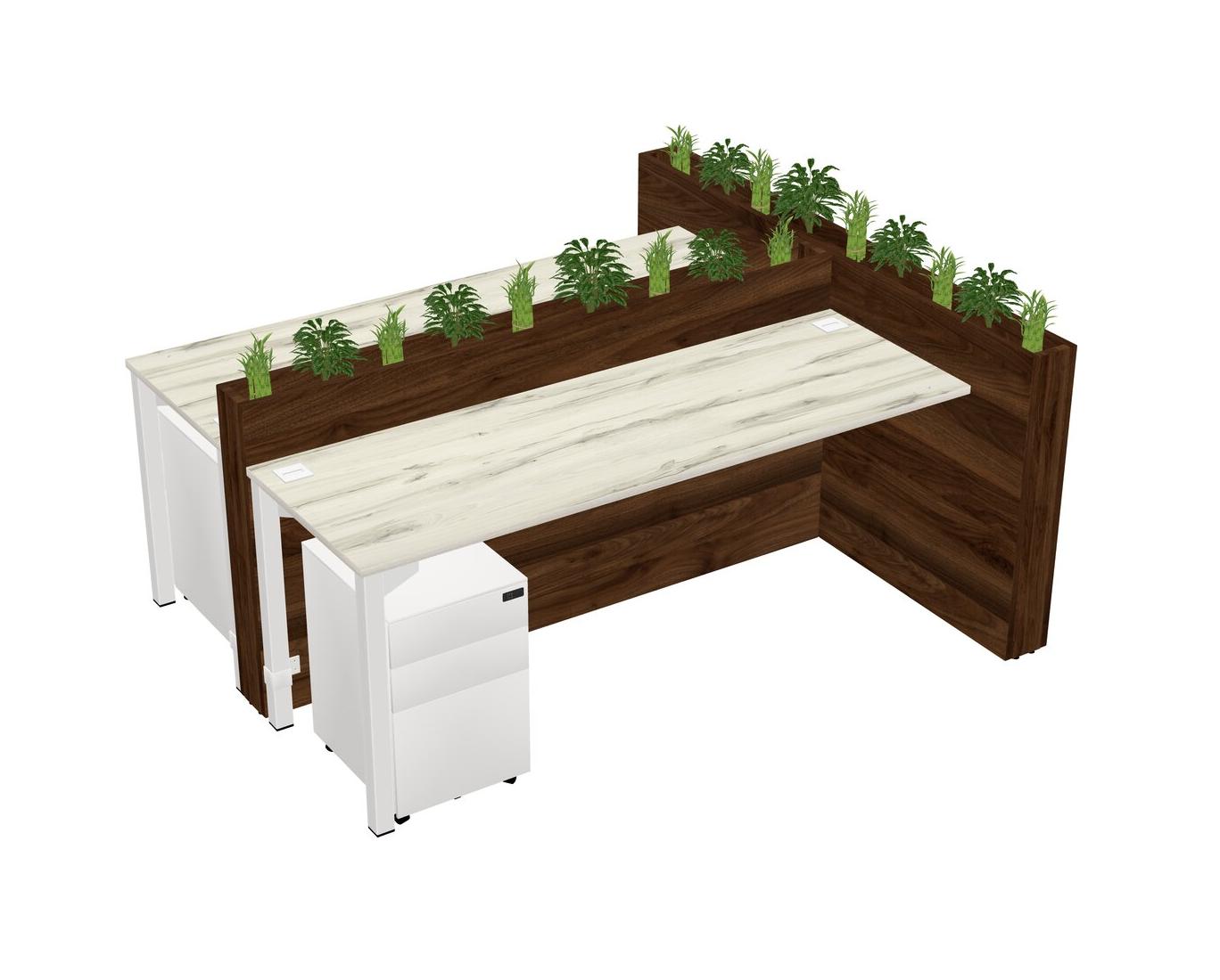 Heinne Holz Rectangular Shared Office Desk System Metal Mobile Drawers (Pots & Plants Sold Separately)