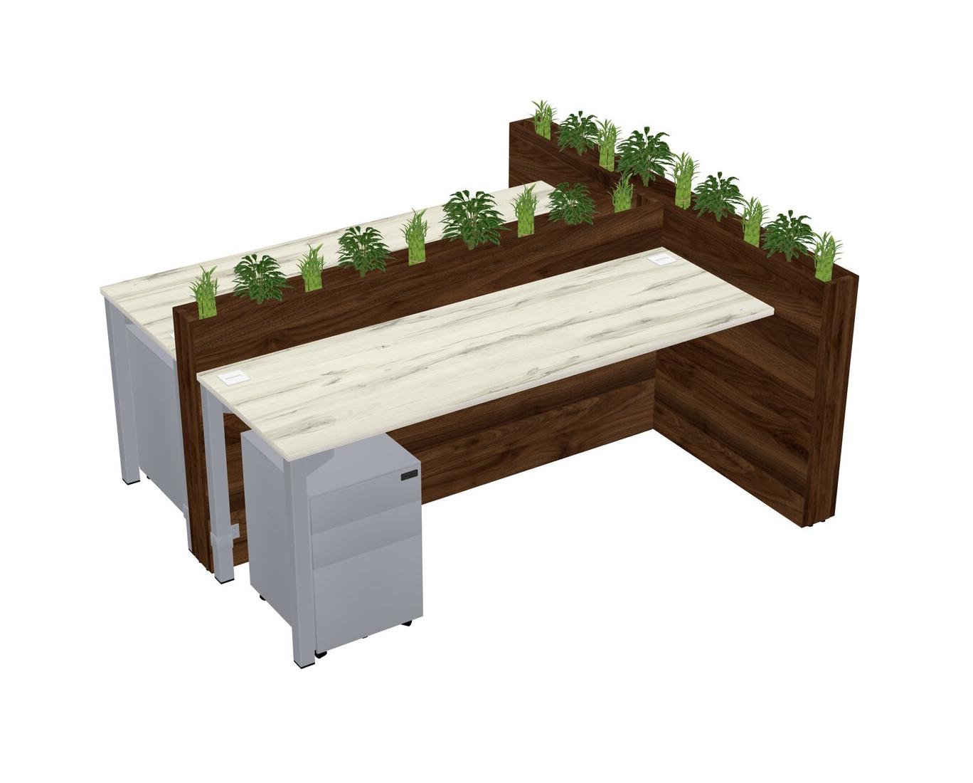 Heinne Holz Rectangular Shared Office Desk System Metal Mobile Drawers (Pots & Plants Sold Separately)