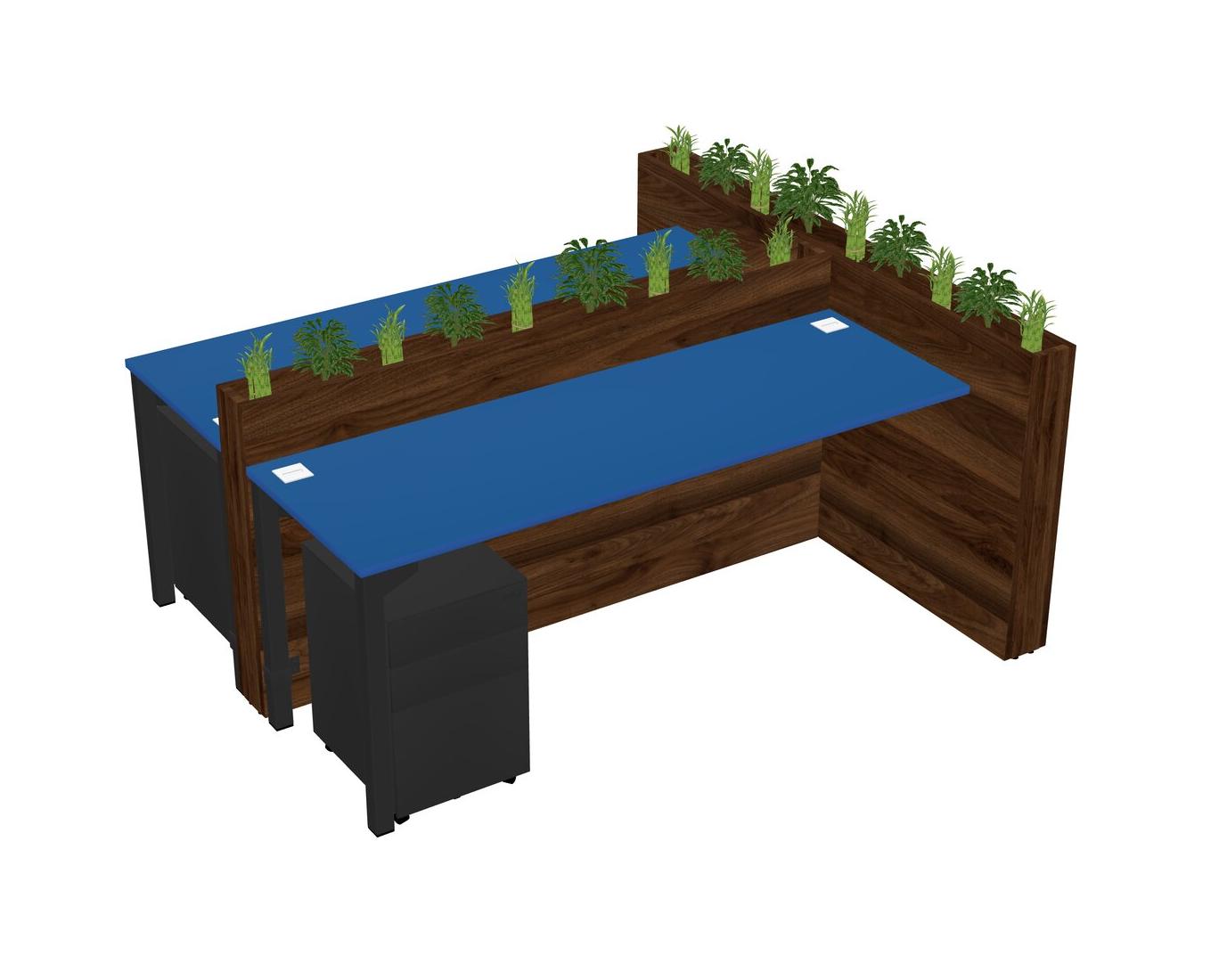 Prism Blue Rectangular Shared Office Desk System Metal Mobile Drawers (Pots & Plants Sold Separately)