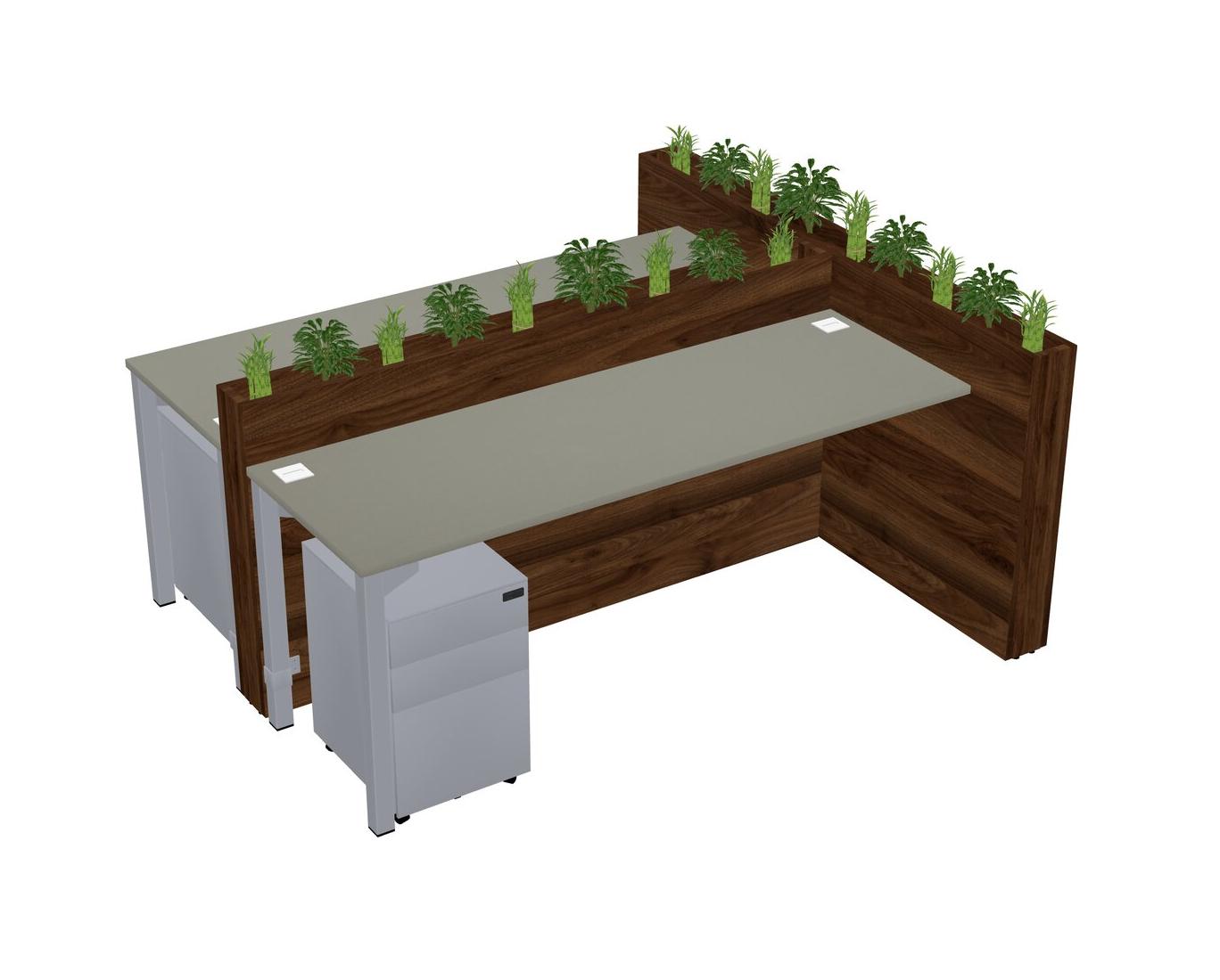 Grey Shadows Rectangular Shared Office Desk System Metal Mobile Drawers (Pots & Plants Sold Separately)