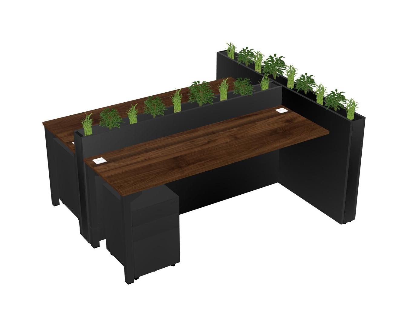 Columbia Walnut Rectangular Shared Office Desk System Metal Mobile Drawers (Pots & Plants Sold Separately)