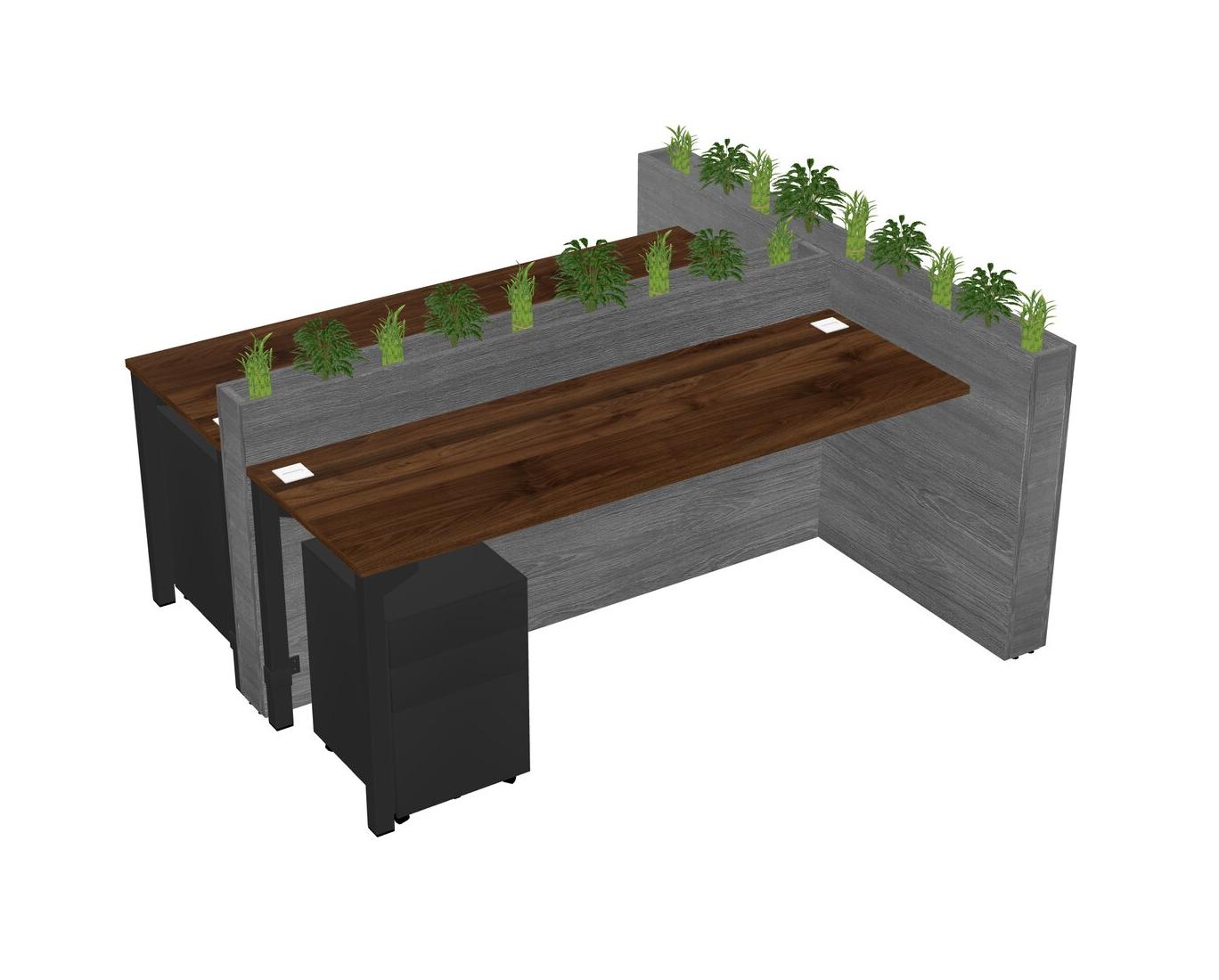 Columbia Walnut Rectangular Shared Office Desk System Metal Mobile Drawers (Pots & Plants Sold Separately)