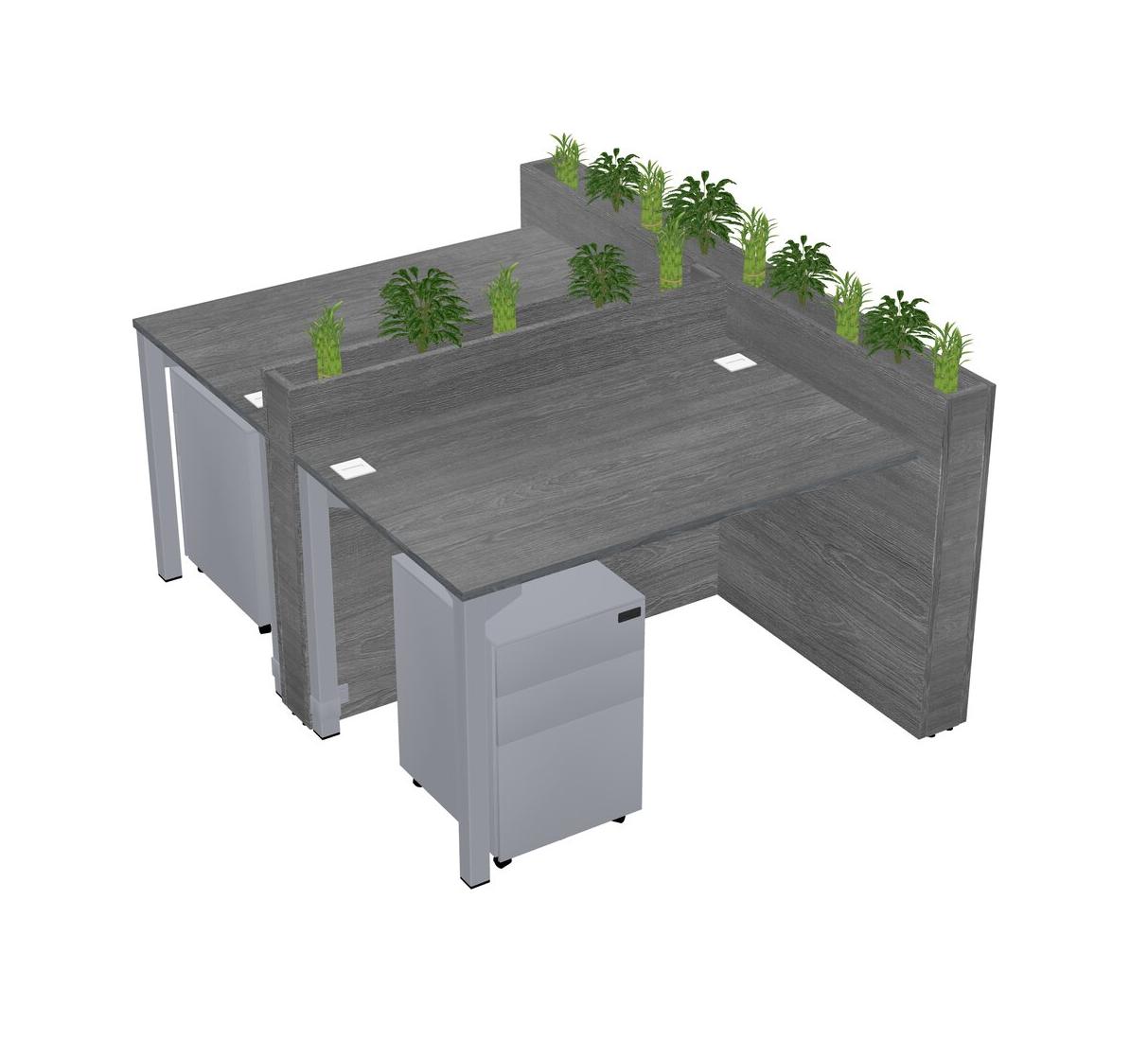 Grey Rectangular Shared Office Desk System Metal Mobile Drawers (Pots & Plants Sold Separately)