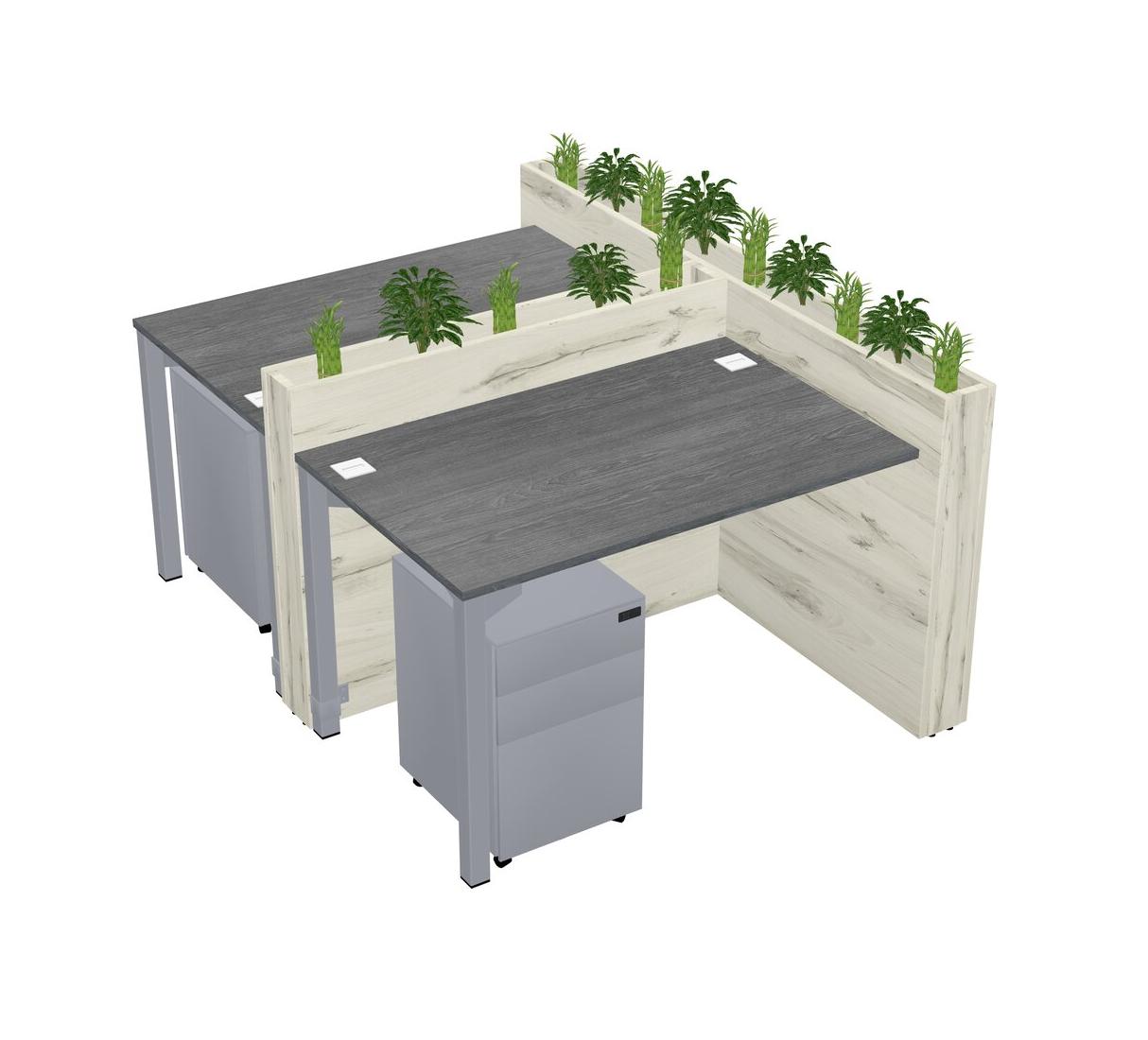 Grey Rectangular Shared Office Desk System Metal Mobile Drawers (Pots & Plants Sold Separately)