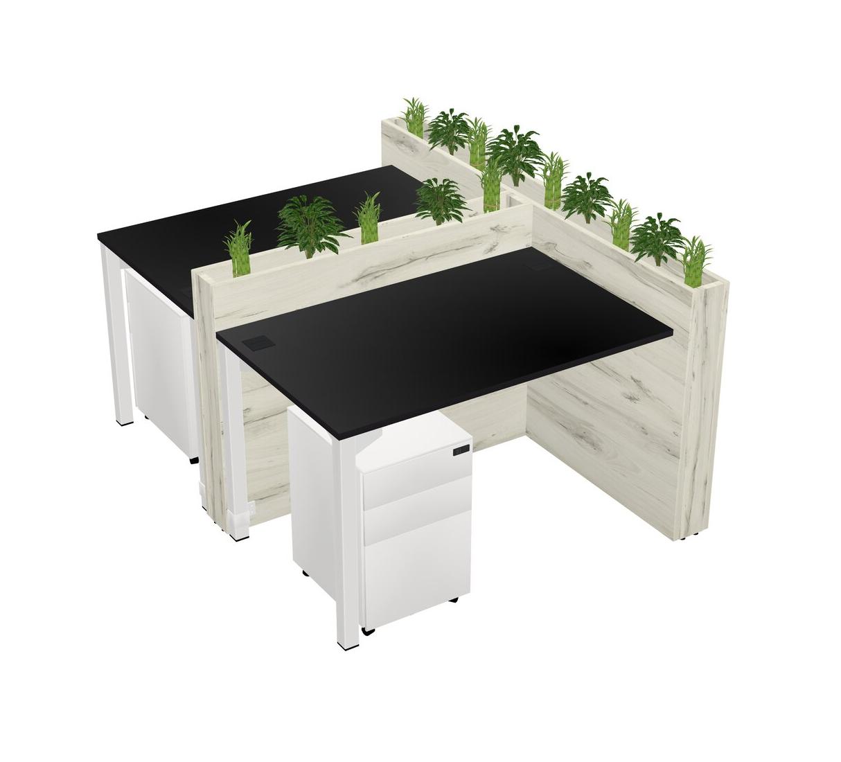 Black Rectangular Shared Office Desk System Metal Mobile Drawers (Pots & Plants Sold Separately)