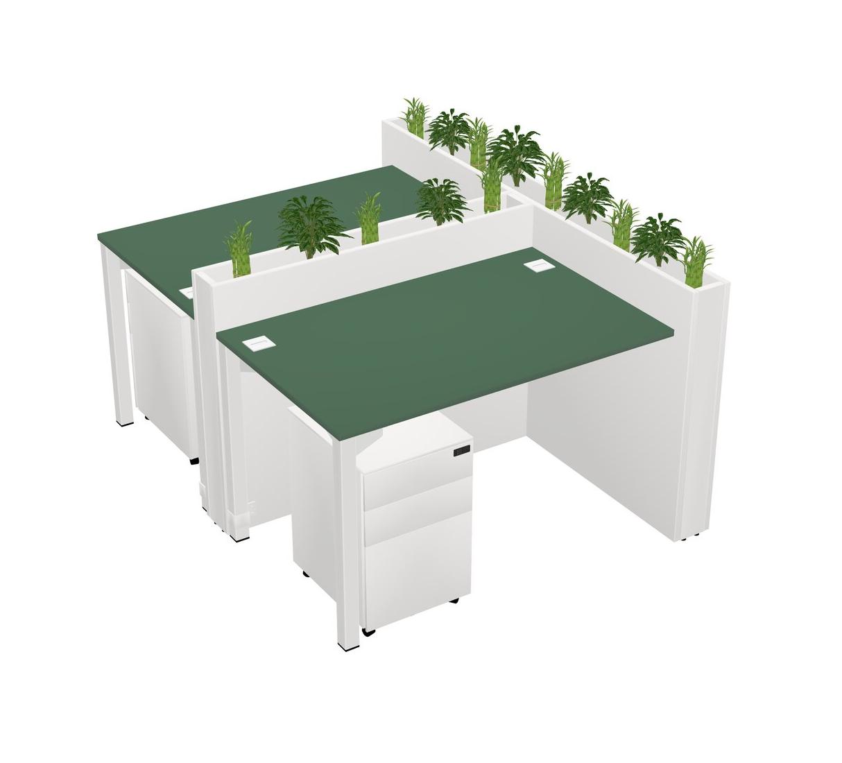 Green Rectangular Shared Office Desk System Metal Mobile Drawers (Pots & Plants Sold Separately)